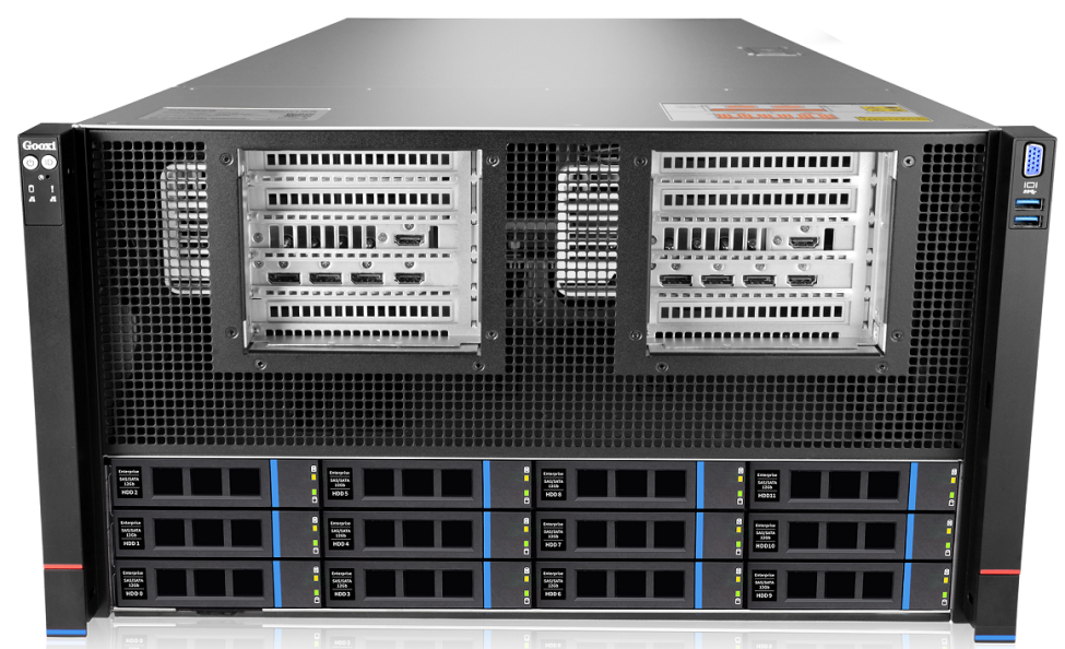 SYR6108G-D12R-G5是Gooxi基于AMD EPYC Turin平台开发的具有强大计算能力和超高弹性扩展能力的人工智能计算服务器,它支持2颗AMD EPYC Turin 9005系列处理器,兼容Genoa 9004系列处理器。可以支持CPU-GPU直连8张3.5宽GPU卡,支持PCIe5.0扩展插槽,满足各种AI业务场景下的应用需求;适用于人工智能、云游戏、虚拟化、大数据分析、数字孪生等应用场景;同时,6U风冷架构使该服务器具有存储容量大、扩展能力强、高可靠、易管理、易部署等优点